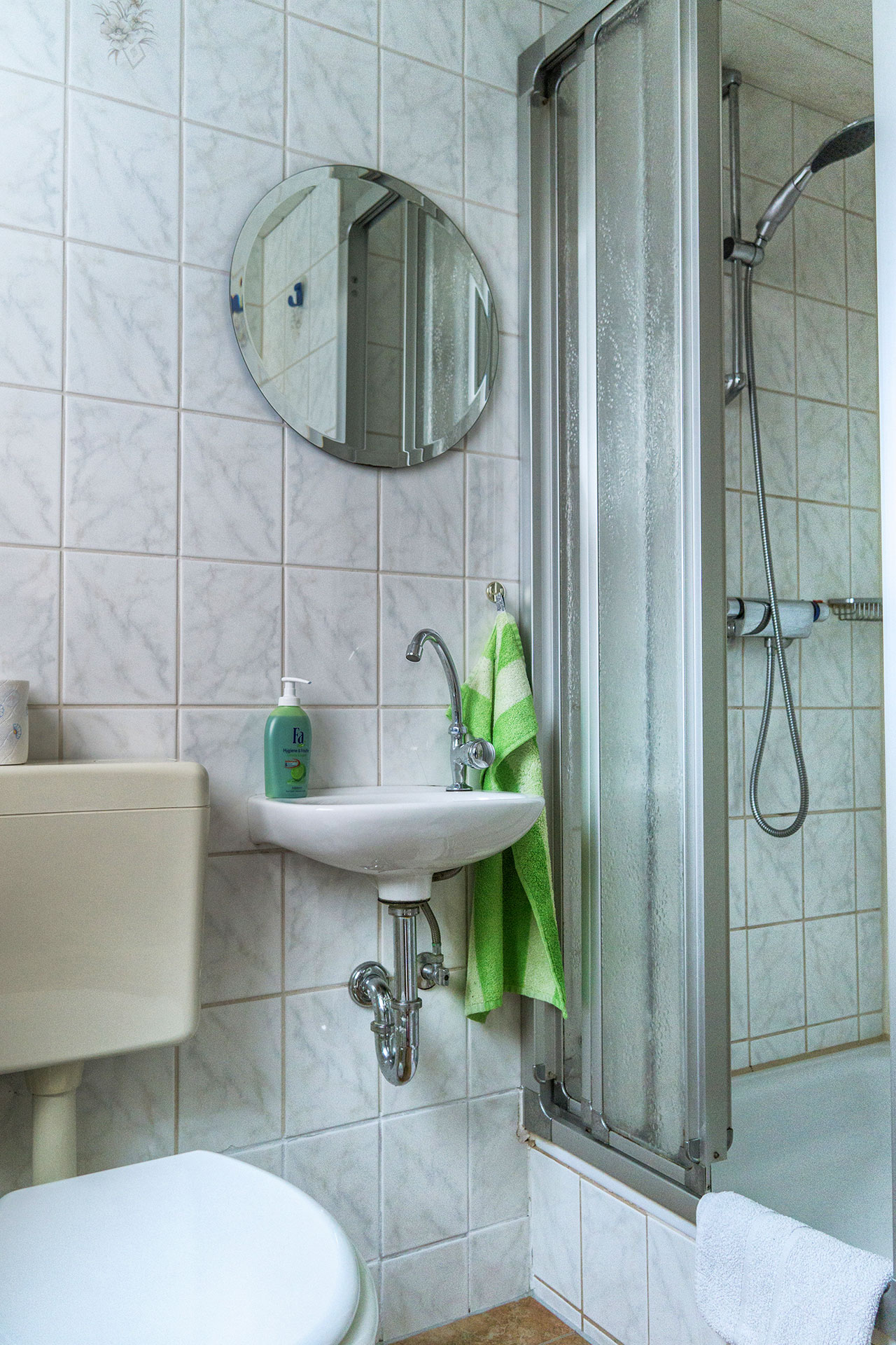 Die Dusche und die Toilette befindet sich in der unteren Etage. Eine weitere Toilette und Waschgelegenheit finden Sie auch in der oberen Etage.